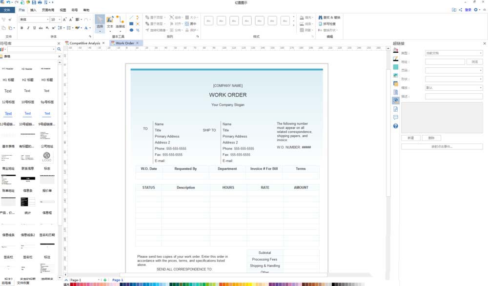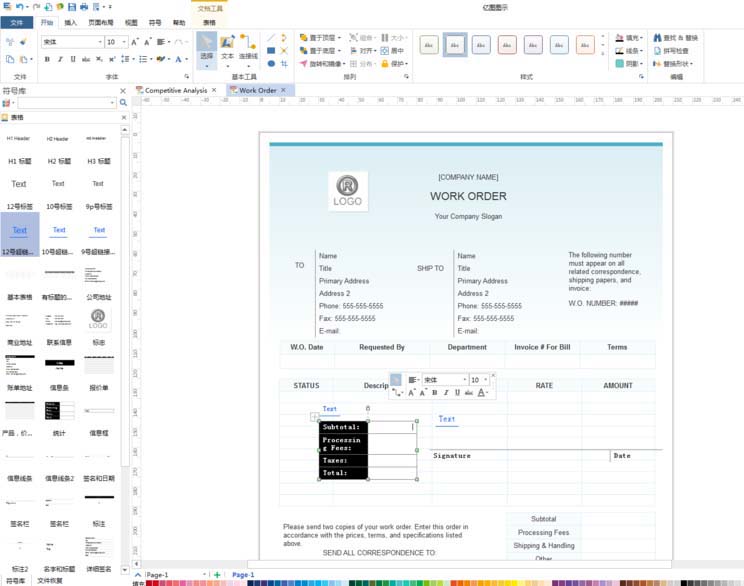 6、从左侧拖动对象到主窗口,添加更多的销售表格元素,以形成最终的销售表格