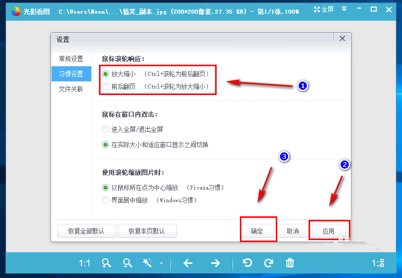 光影看图想要简单的设置鼠标滚轮的功能,该怎么设置呢?下面我们就来看看详细的教程。