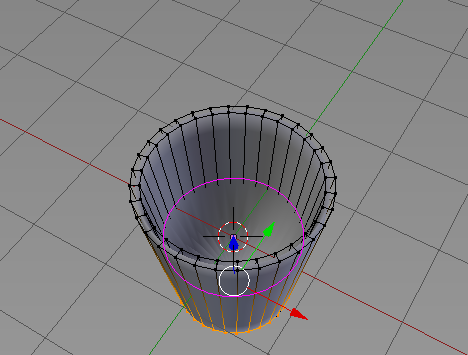 5、按一下[S],然后拖动鼠标,把面缩小到合适的距离,单击鼠标确定,外面的一环点与里面的一环点之间的厚度,就是杯子的厚度