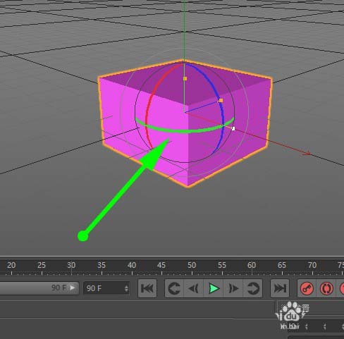 5、我们可以按键盘上的r快捷键来选择视图对象哦。按r键之后便会出现三条圆形旋转轴。