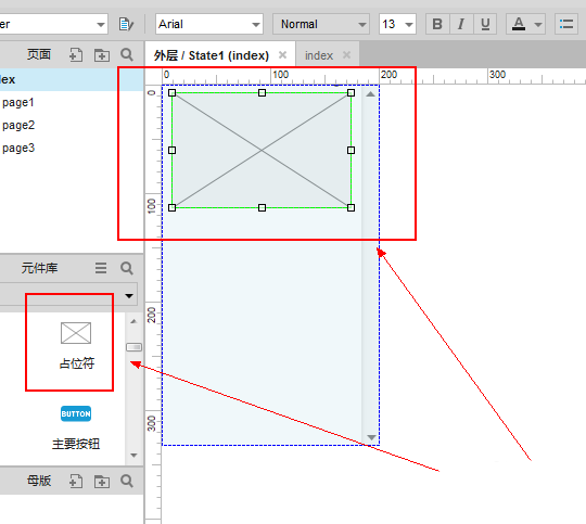 4、我们的滚动条做好之后,我们需要给我们的动态面板添加内容,我们点击“占位符”,并将其拖到我们的动态面板内。