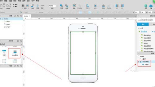 1、我们先打开我们的axure软件,点击新建,然后将我们的手机模型拖拽进我们的axure,点击我们的“动态面板”将其往编辑窗口拖拽。如下图