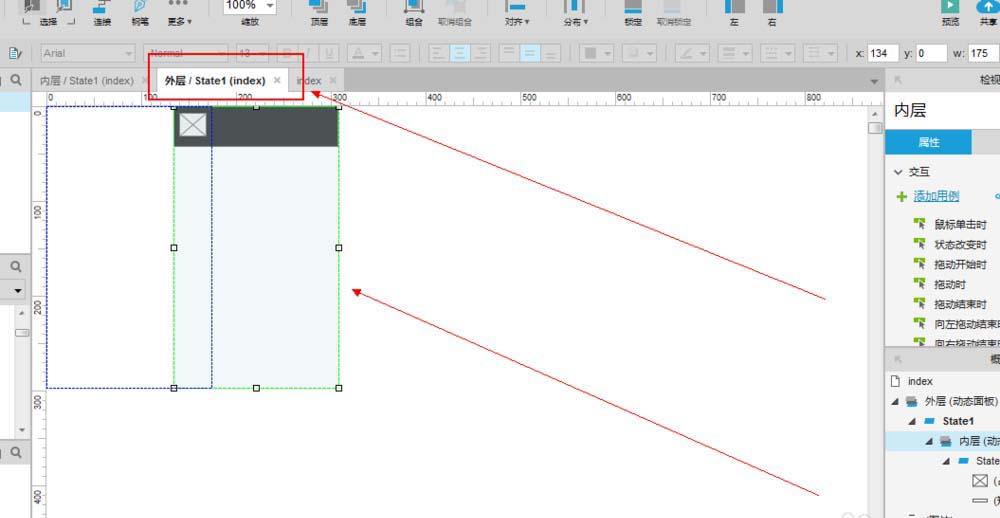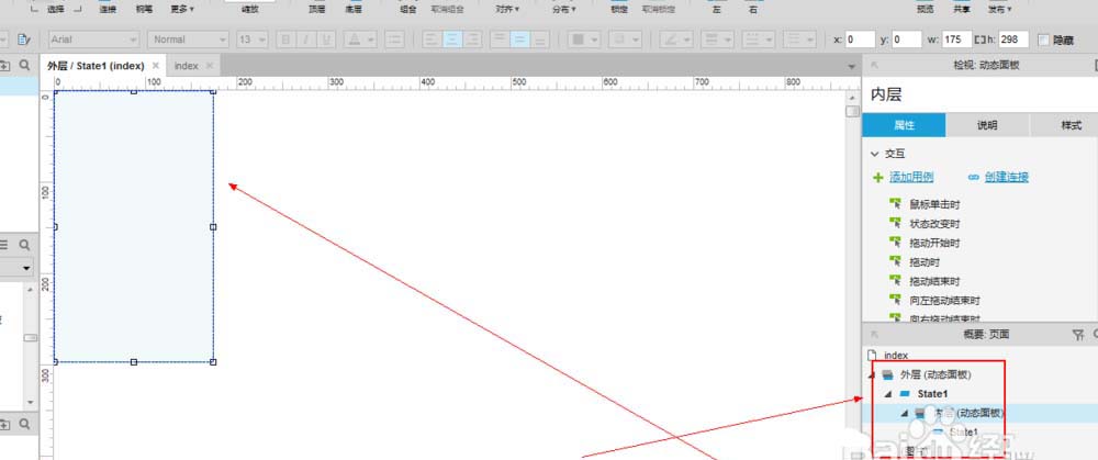 2、创建好我们的动态面板之后,按住“ctrl+c”将其复制下来,然后双击我们的“外层动态面板”下面的state1,然后按住“ctrl+v”将我们的“外层动态面板”复制下来