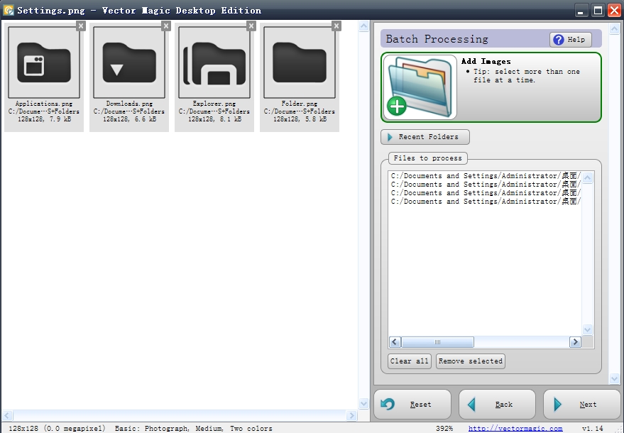 然后点“next”按钮等待批量处理结束,我们的矢量图形就生成好了!