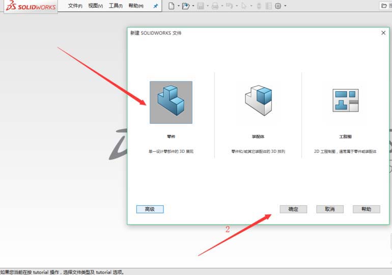 1、首先,在SolidWorks2016软件里新建一个零件(Ctrl+N),如图所示