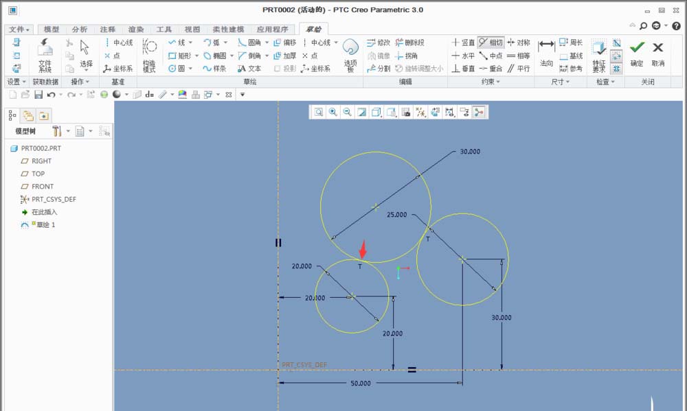 Creo里可以绘制两个圆的相切圆,如果知道圆的半径该怎么画呢?下面我们就来看看详细的教程。
