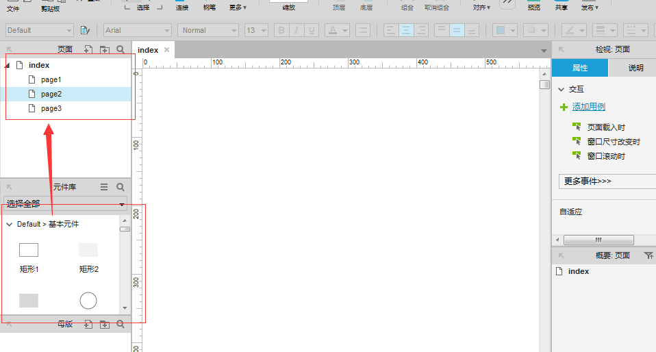 1、打开Axure软件,新建一些元件;