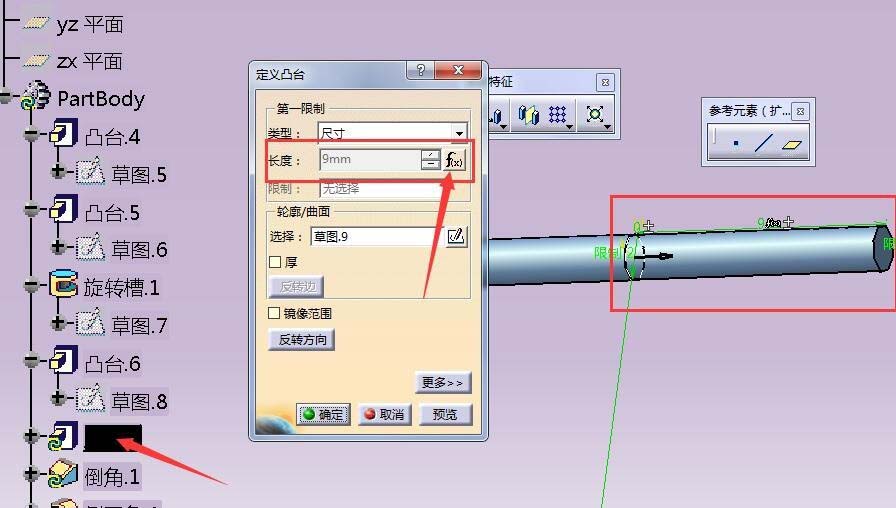 8、如果需要改长度,在树中,找到凸台双击,即可弹出设置框,可以看到同样为灰色,清除fx即可。同理其他任何需要修改部分,都可根据具体情况,进行。