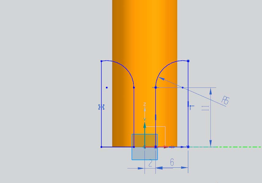 2、在圆柱顶端相应位置开槽,具体参数如图所示。