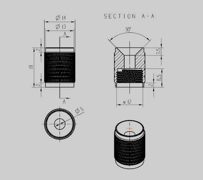 5、选用螺纹刀命令,选详细,选中如图所示的面作为螺纹的创建面,创建出一条M12的内螺纹。