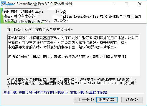 1、点击Alias SketchBook ProV2.0 汉化版.exe启动,这里是软件的主要安装引导界面