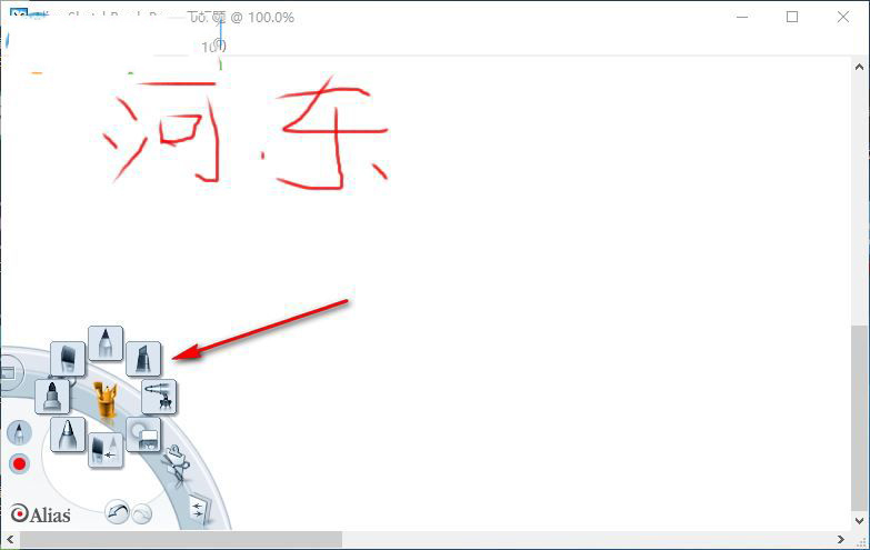 拥有八种绘图工具,可以选择铅笔、钢笔,同样鼠标点击选择界面不放,就可以找到绘图工具