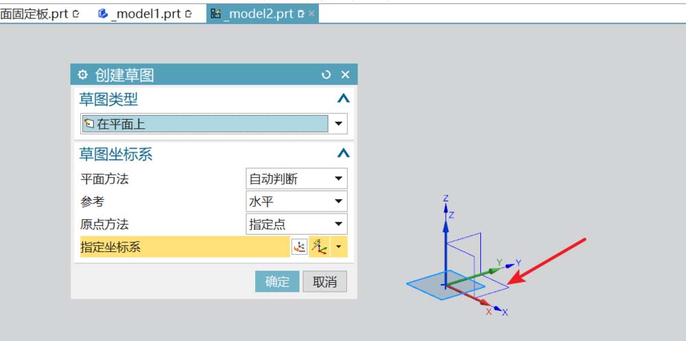1、新建建模文件,选用拉伸命令,以XY面为截面草绘面。进入草绘模式。