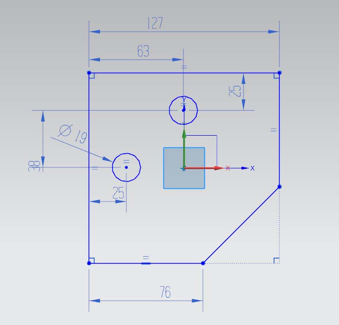 5、选用开孔,在倾斜面上定好开孔点;定位及孔尺寸如图所示。