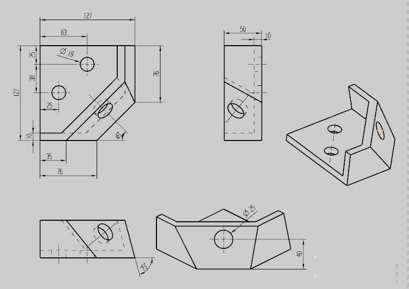 6、进入工程图,标注各视图的尺寸。