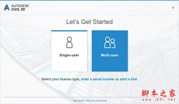 10、打开AutoCAD Civil 3D 2019,选择激活类型为“多用户”