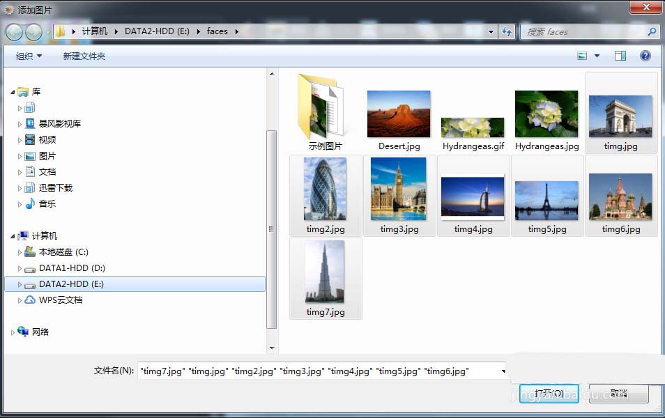 4、在打开对话框中选中多个图片,然后点击【打开】