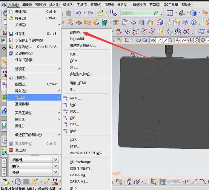 3、选择导出-部件(或者其它格式也可以,根据自己需要)