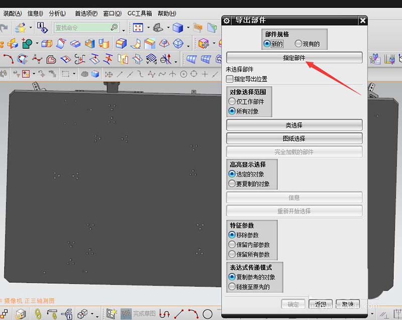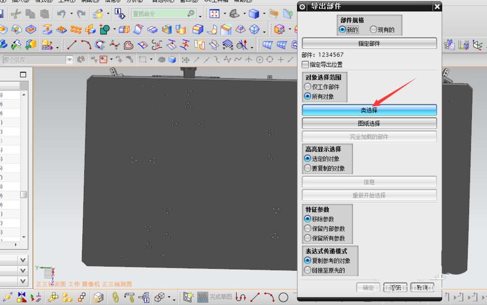 5、点击类选择,选择需要导出的部件,可选择多个。