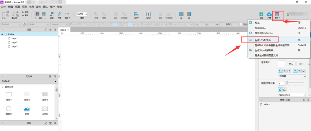 5、点击右上角的【发布】-->【生成HTML文件】。