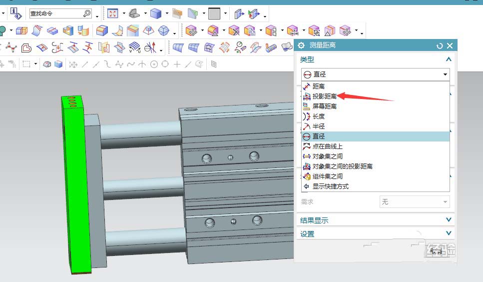 4、测量距离下拉选项中选择需要测量的距离类型。