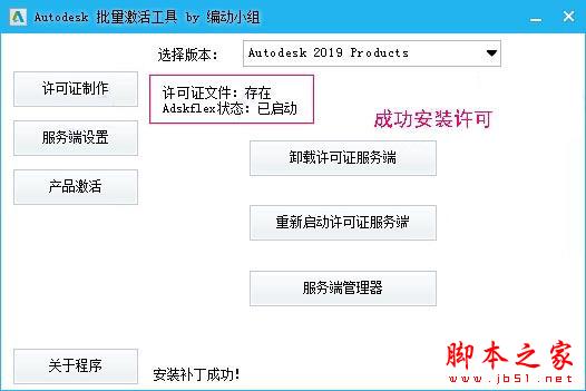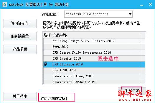 9、下载运行注册机即批量激活工具,勾选需要激活的软件包autodesk cfd 2019,点“生成许可”;