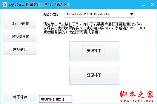 11、进入“产品激活”,选择要安装补丁的版本,点“安装补丁”;