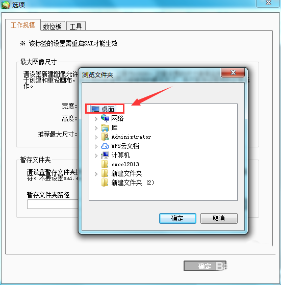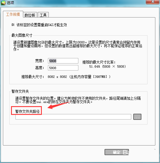 5、点击工作规模选项在其内找到暂存文件的路径选项,如图所示: