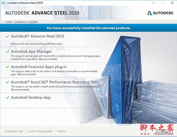 8、现在安装好最新autocad advance steel 2019.0.1补丁包;