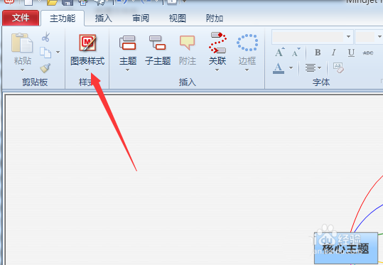 1、首先进行打开一个需要的编辑思维导图的文件,然后进行点击主功能中的 图表样式 的选项。