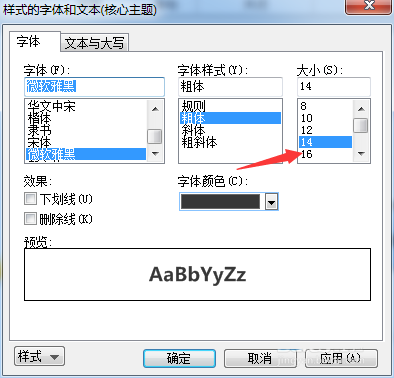 4、就会弹出了一个字体和文本的窗口界面当中,进行再大小中进行修改大小。