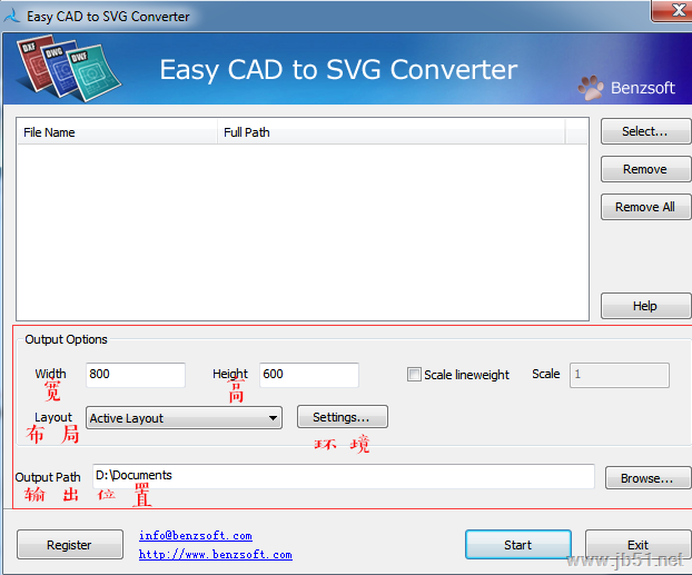 在这里您可以输入任何的DWF,DWG格式,或DXF图纸,指定输出的宽度与高度,规模线条粗细,选择模型空间,图纸空间,积极布局,或所有的布局。