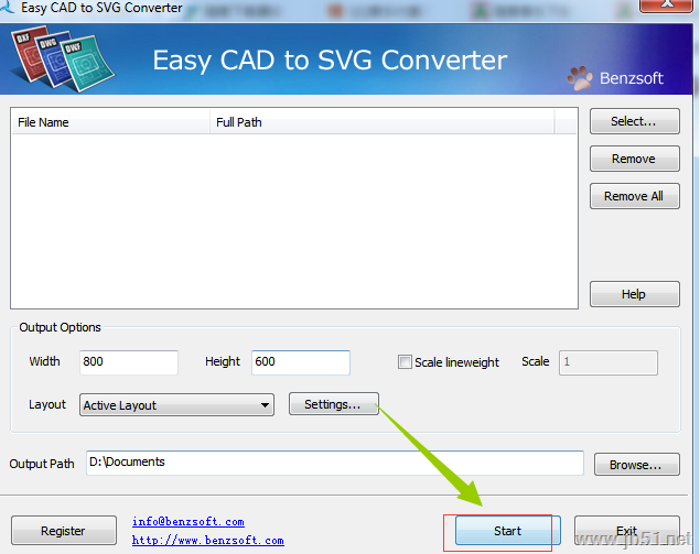3、最后点击start按钮即可,等一下它会将CAD文件转换成SVG文件的。