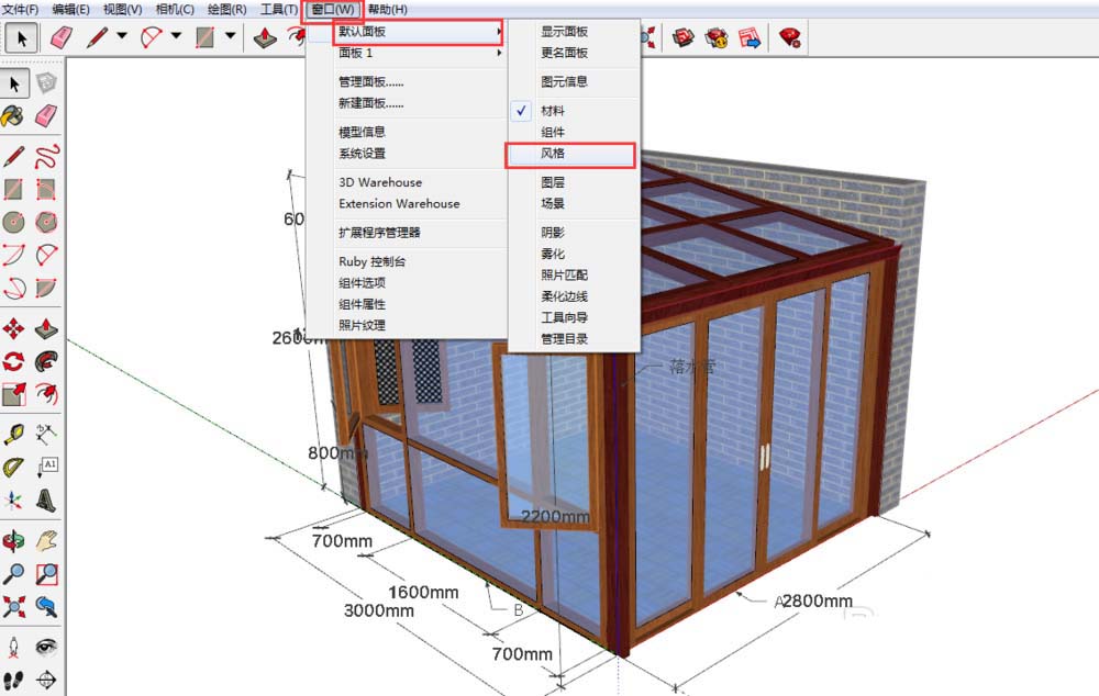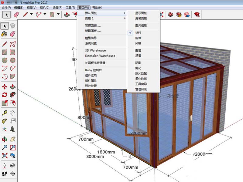 1、打开草图大师,在以往的旧版本我们习惯点击窗口然后在一级的菜单栏就可以找到样式。但是在2017版中我们翻遍所有的菜单 也找不到 样式 。