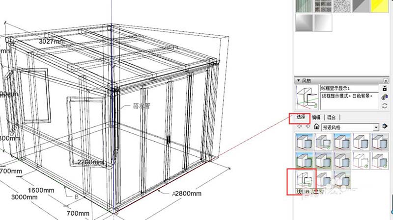 3、还可以点击选择,选择下面提供的几种预设风格,如图,点击线框显示,此时左边的图形就会做相应的显示。