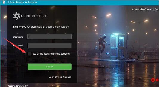 4. 打开C4D,顶部菜单,运行Octane,如果提示需要用户名和密码,输入即可