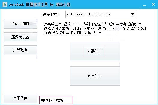 10、进入“产品激活”,选择要安装补丁的版本,点“安装补丁”;