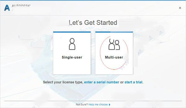 11、打开Alias Surface 2019软件,选择激活类型为“多用户”(早期版本为“使用网络许可”)在随后弹出的对话框中输入127.0.0.1(许可证安装在本地)或者对应电脑的IP地址(许可证未安装在本地)即可。