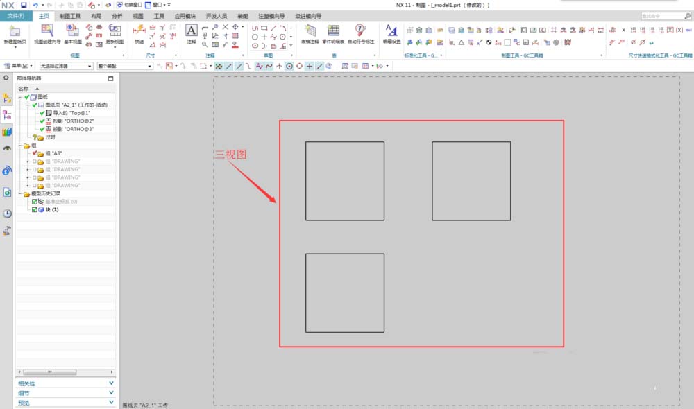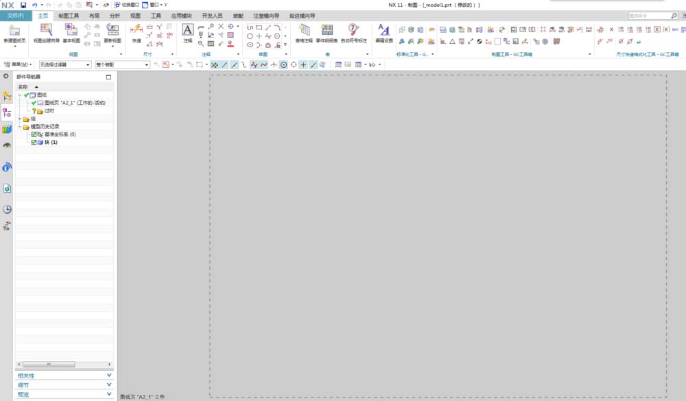 1、打开NX模型,新建图纸页