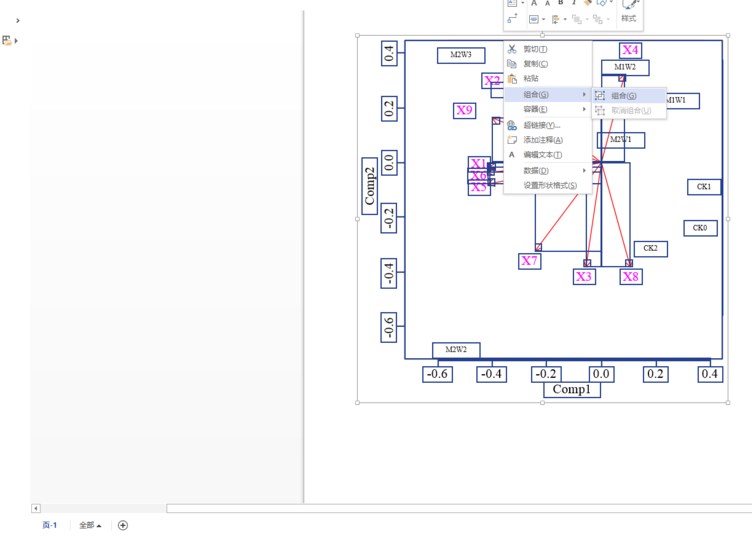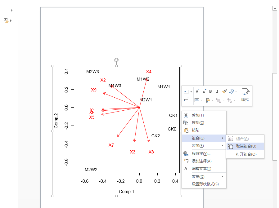 4、取消组合。鼠标左键单击导入的图片,释放鼠标左键后右击,在弹出的快捷菜单中找到“组合”,鼠标移动到该快捷菜单,在其二级菜单中选择“取消组合”。