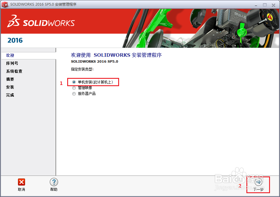 3、双击安装后会弹出安装界面,选择单机安装,点击“下一步”。