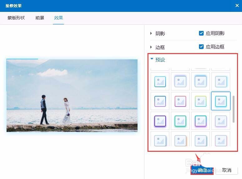 适当为图片设置阴影和边框效果可以加深观众对动画视频的印象。万彩动画大师提供多种图片预设效果,点击即使用,“确定”保存设置。