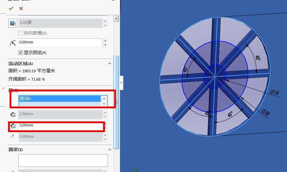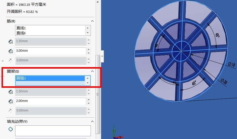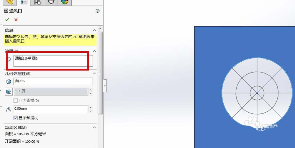4、首先需要选择的是通风口的边界.这里选择的是草图中的最外层的一个圆.