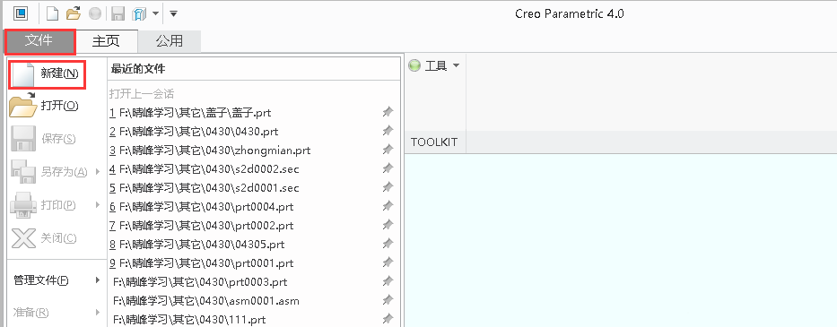 1、打开creo4.0软件。
