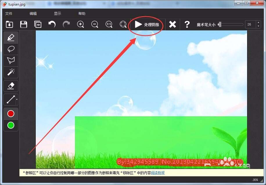 6、单击处理图像按钮,稍等片刻,水印就去除了。