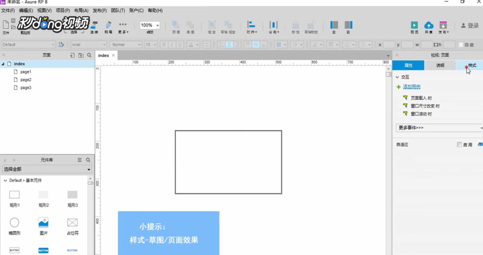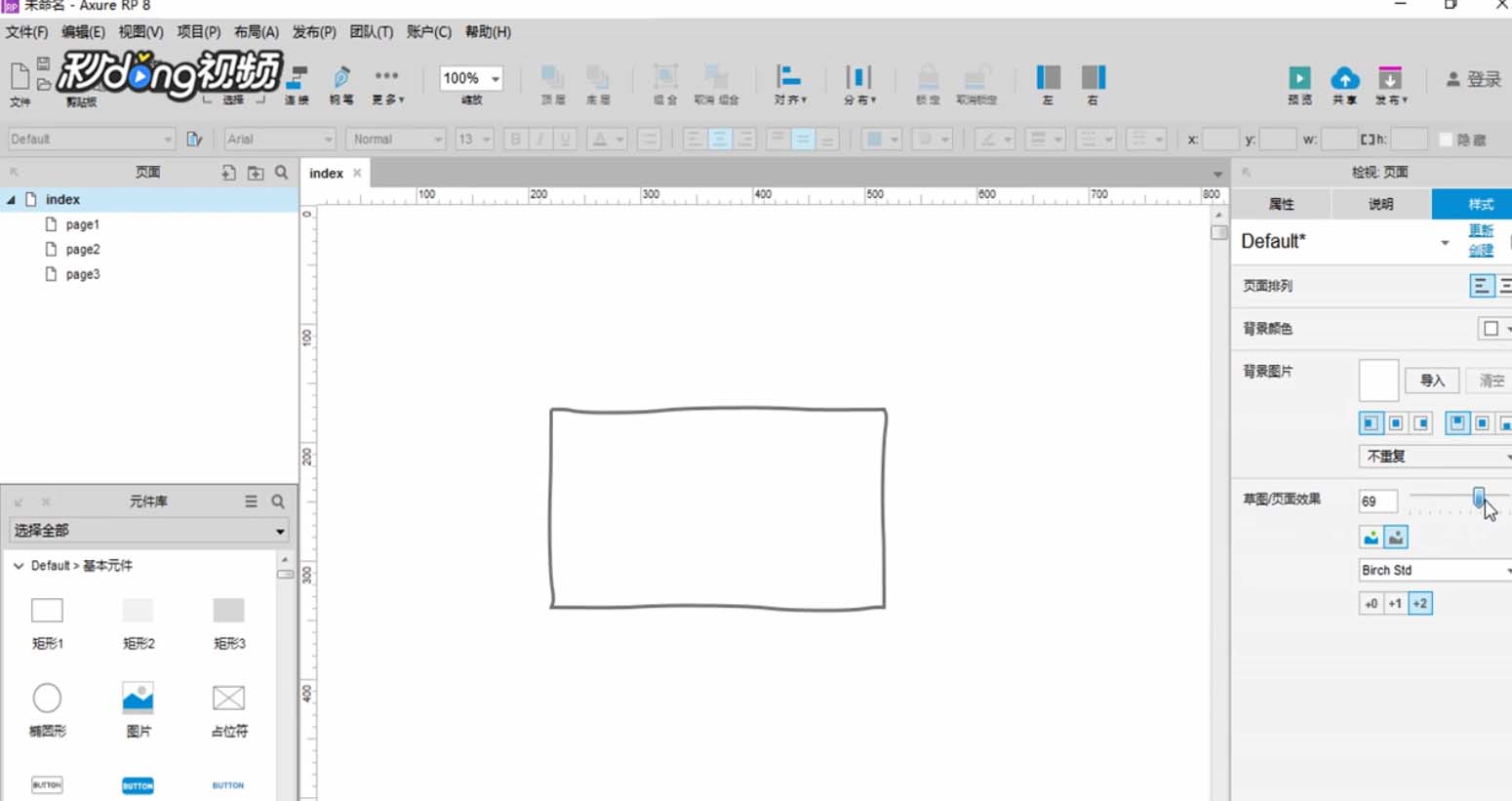1、打开Axure RP 8,新建一个矩形元件。