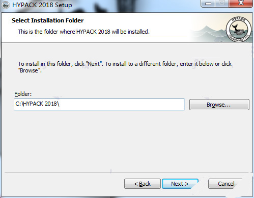 3.选择安装位置,默认路径为“C:\HYPACK 2018\”点击“browse”可更改目录,但是建议不要去更改保持默认即可,这样才方便等下的破解操作