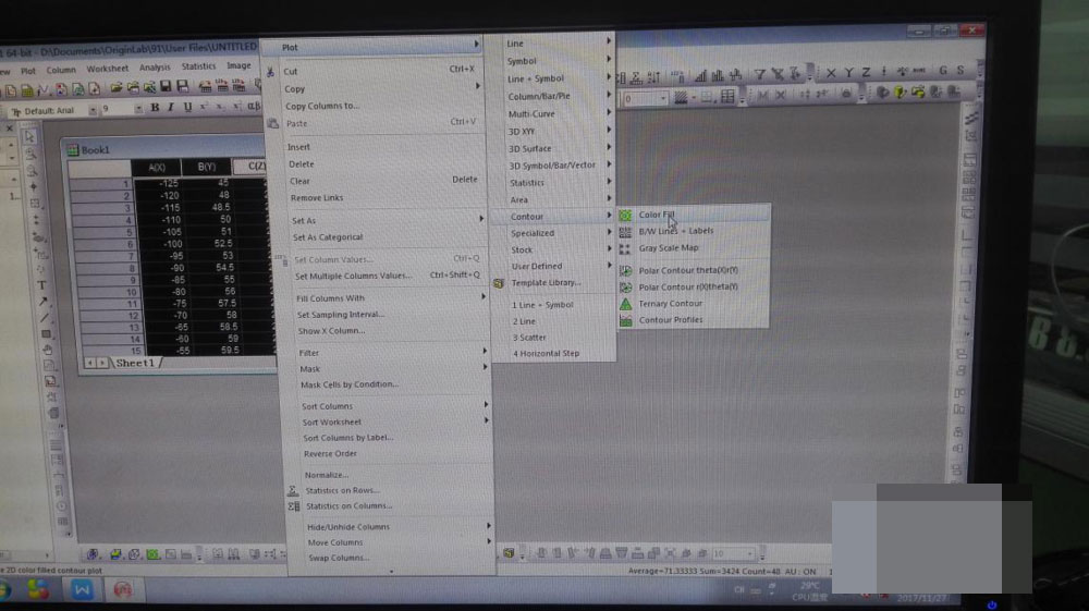 在origin9.1中绘制彩色等值线图教程