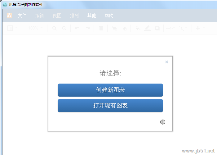二、下载完成后,安装并运行。打开软件,就可以看到有两个选项:“创建新图表”或者“打开现有图表”。我们既可以通过这款软件打开已有的流程图文件进行编辑,也可以创建绘制新的流程图。