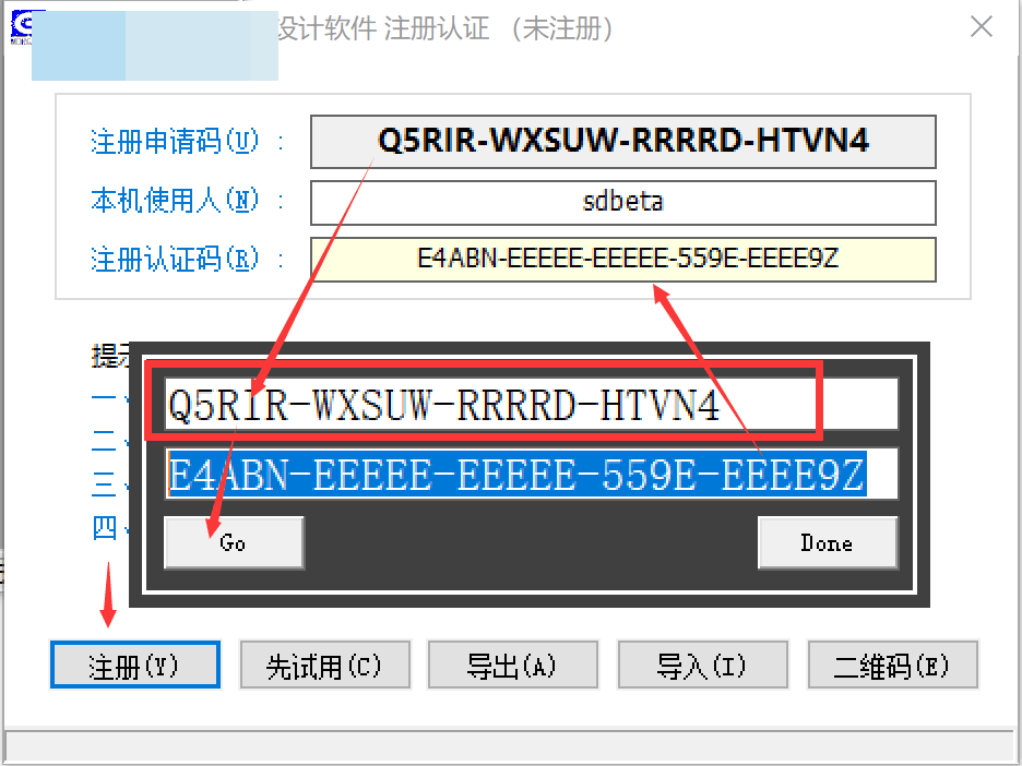 8.运行注册机,输入软件的请求码,点go生成注册码,并将注册码输入软件
